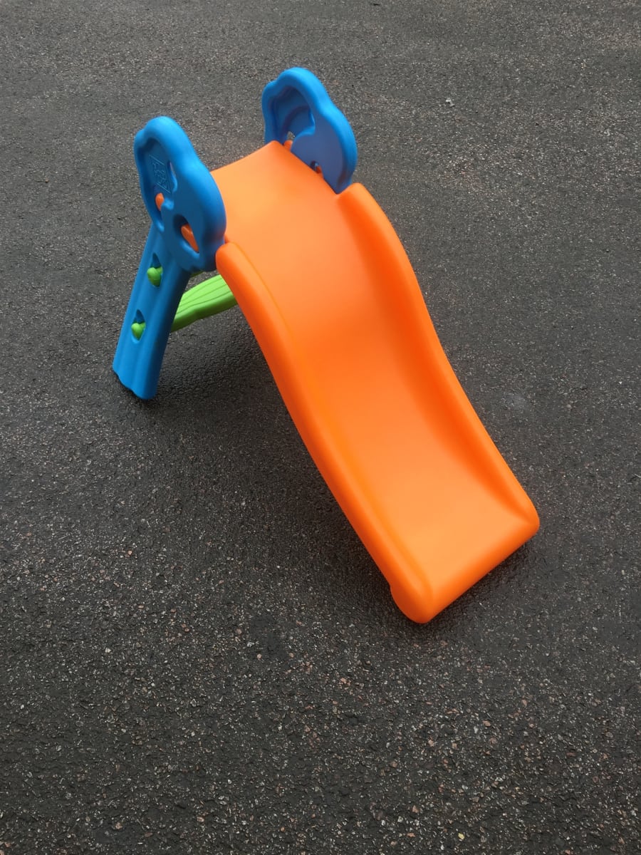 This orange and blue toddler slide can go with any theme for both boys and girls.