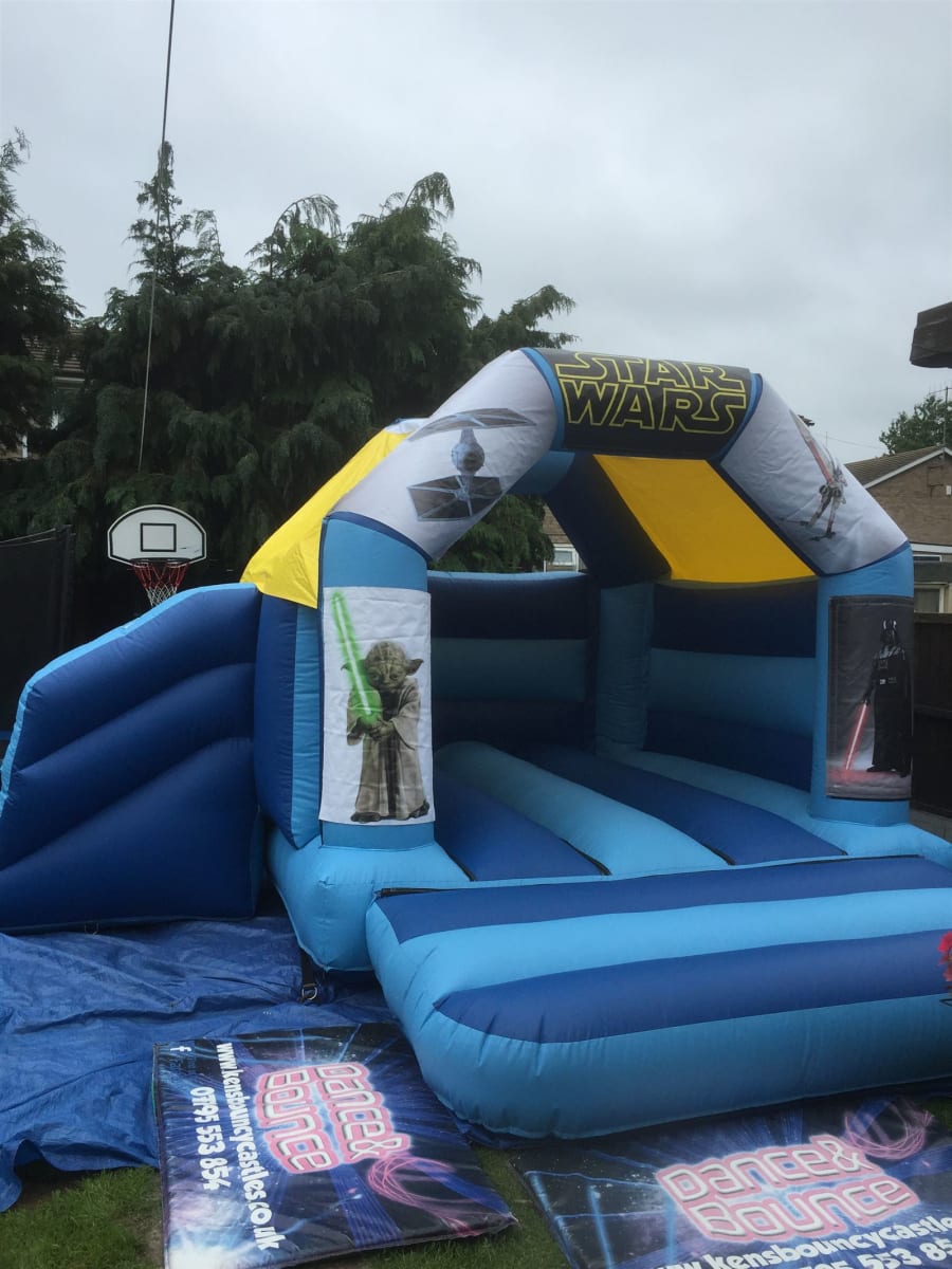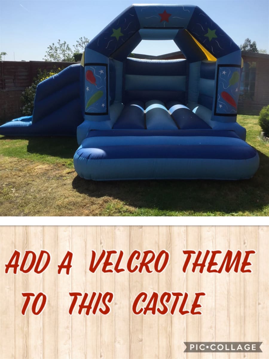With this Velcro combi castle, you choose the theme you want to be added. When booking online, please add the theme you would like in the comments box on your booking form.