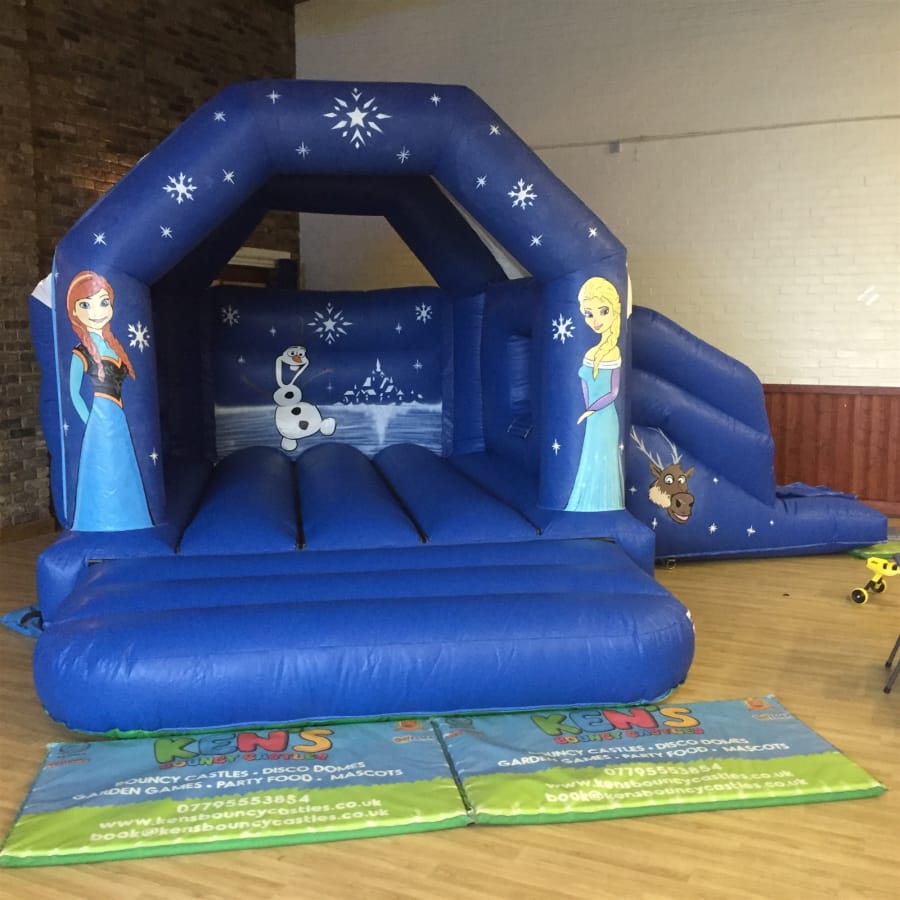 Bounce and slide on our Frozen themed bouncy castle.