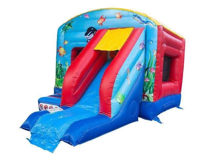 Hire this bouncy castle slide combination unit themed under the sea. This castle is 12 foot wide by 18 foot long & 10 foot high, so suitable for most halls.