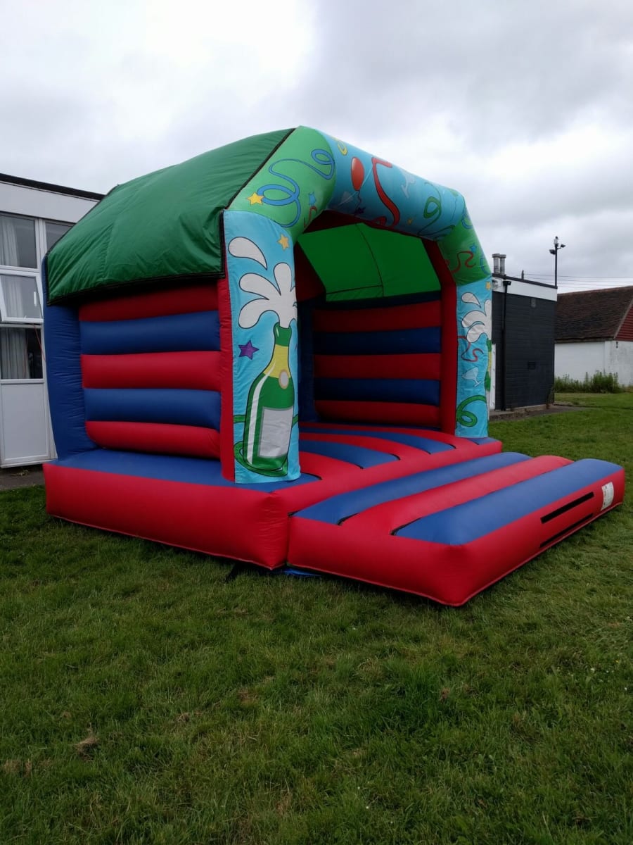 Very popular unisex bouncy castle for all special occasions. This castle features a variety of party poppers, balloons & champagne bottles on the front cover. This castle is suitable for both Kids & Adult parties and come's fitted with a rain cover & mats supplied.