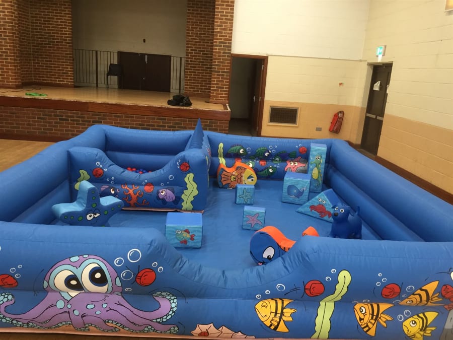 Play surround is 14x14 foot in size and comes supplied with under the sea soft play shapes.