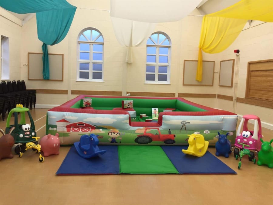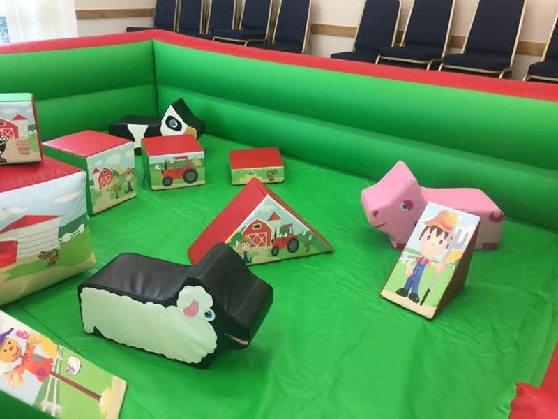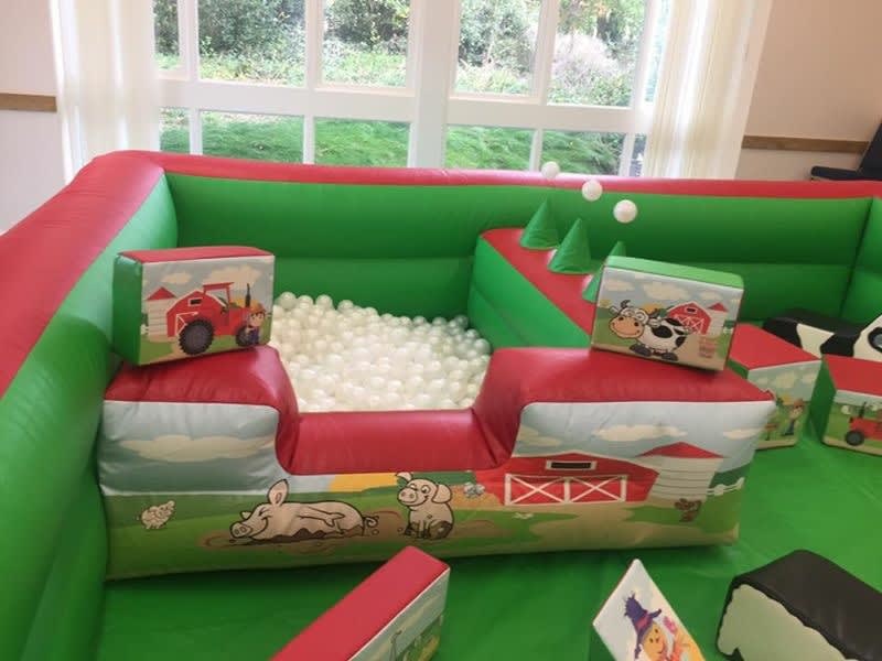 Then hire this Farmyard play surround which has a built in ball pool area.